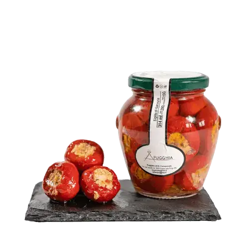 Non lasciarti sfuggire l'opportunità di assaporare un prodotto autentico della cucina pugliese. Acquista ora i Peperoni Ripieni di Tonno Sott'olio e porta il gusto unico della Puglia direttamente a casa tua!