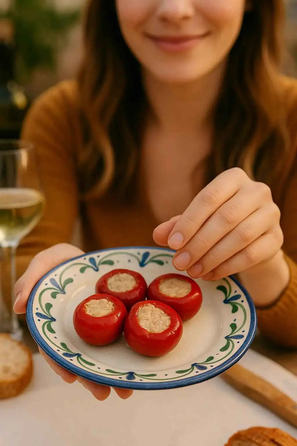 Ideali come antipasti pugliesi, questi peperoni ripieni possono essere serviti freddi o leggermente riscaldati. Si abbinano perfettamente a un tagliere di salumi, formaggi e vini pugliesi come il Primitivo o il Negroamaro, creando un'esperienza di gusto unica e indimenticabile.